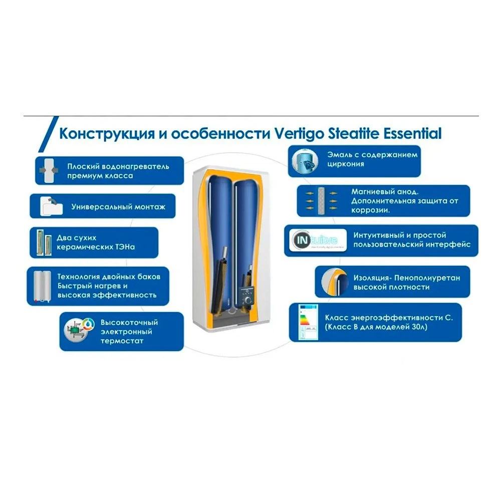 Atlantic Vertigo Steatite Essential - это серия плоских водонагревателей, предназначенных для обогрева воды в домашних условиях. Они имеют несколько интересных особенностей: